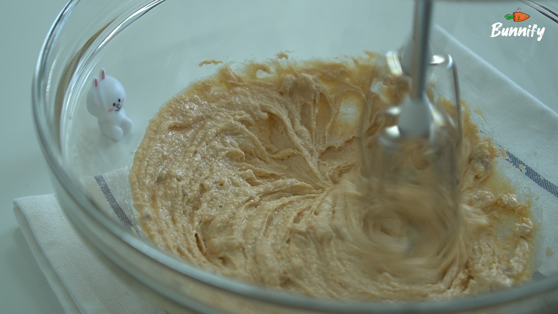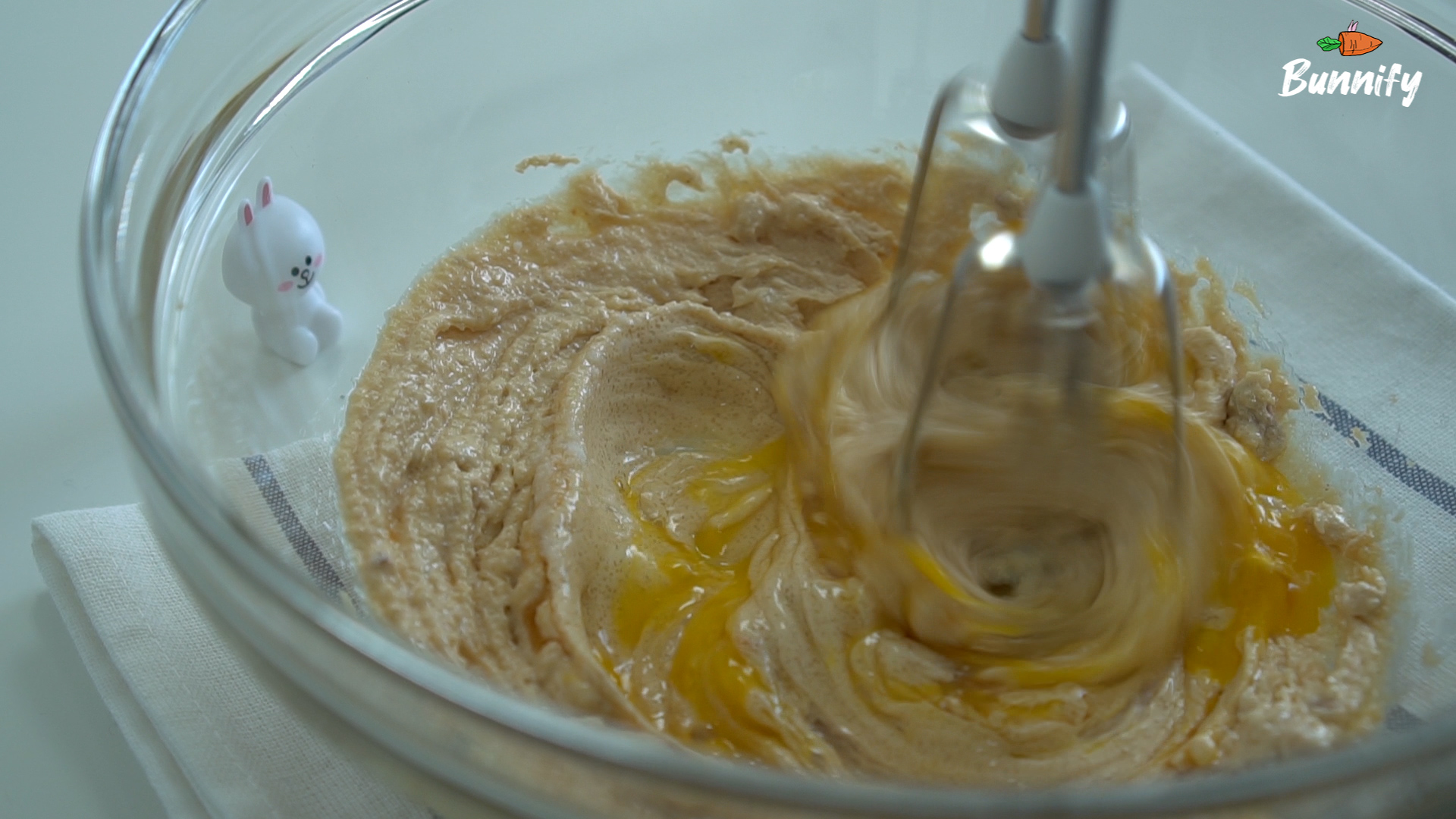 설탕이 어느 정도 녹고, 색이 밝아질 때까지 휘핑해주세요