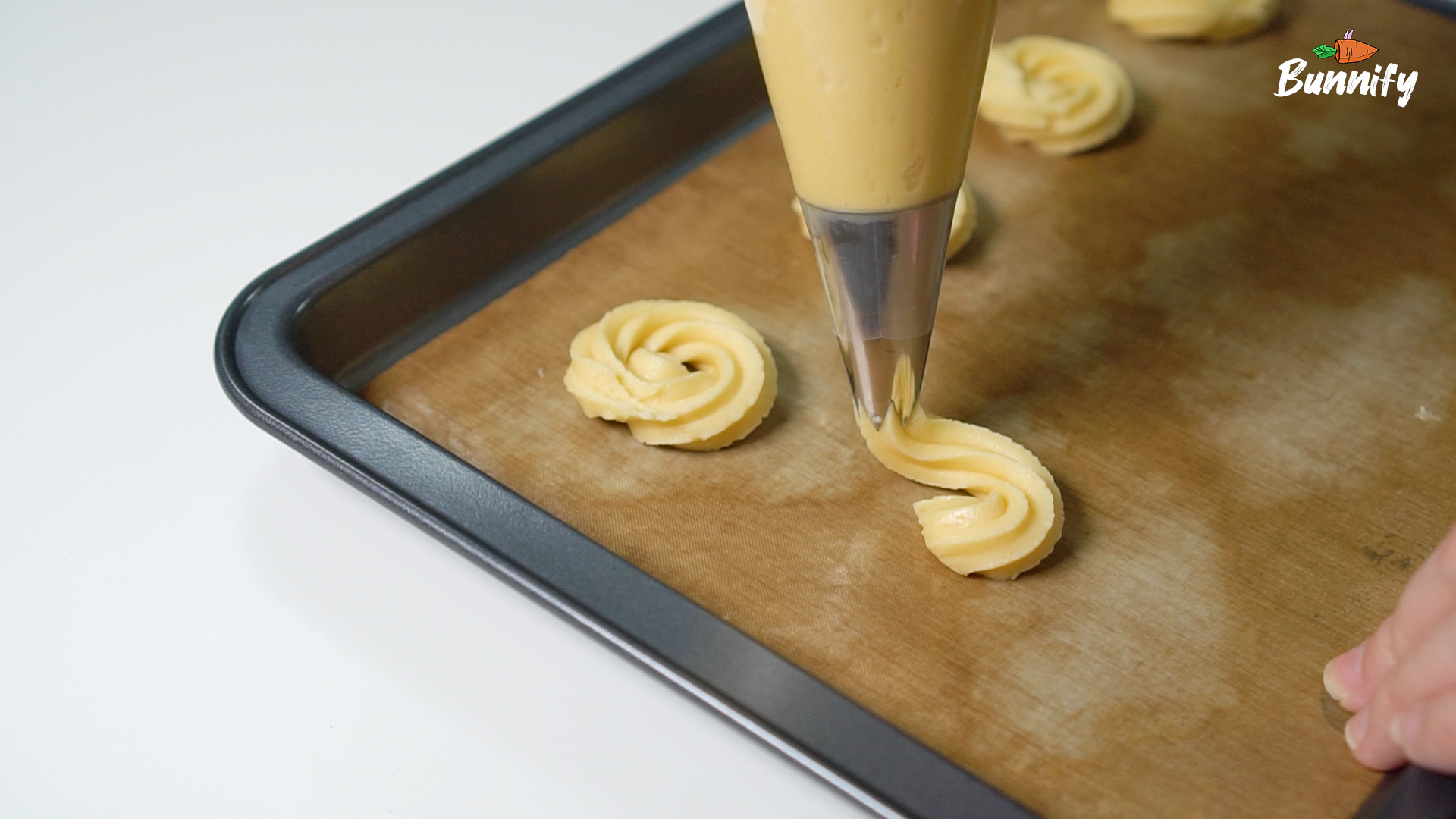 저는 반죽을 쉽게 짜기 위해서 우유를 조금 더 추가하였는데, 구울 때 퍼짐이 조금 있었어요~