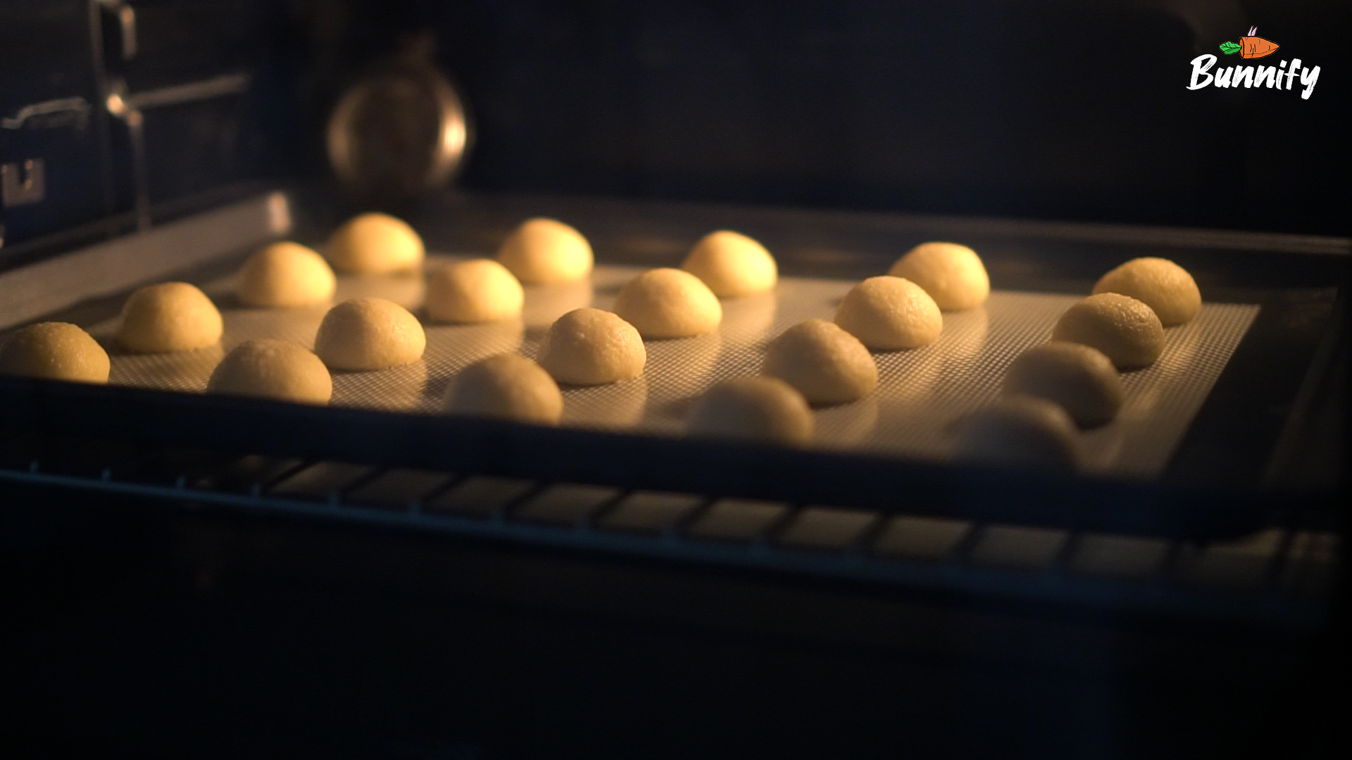 분할한 반죽을 손으로 동그랗게 빚으면서 반죽의 온도가 많이 올라간 경우, 잠시 냉장고에 넣어 차갑게 한 후 구워 주시는 게 좋아요~ 반죽의 온도가 높으면 구울 때 퍼질 수 있어요