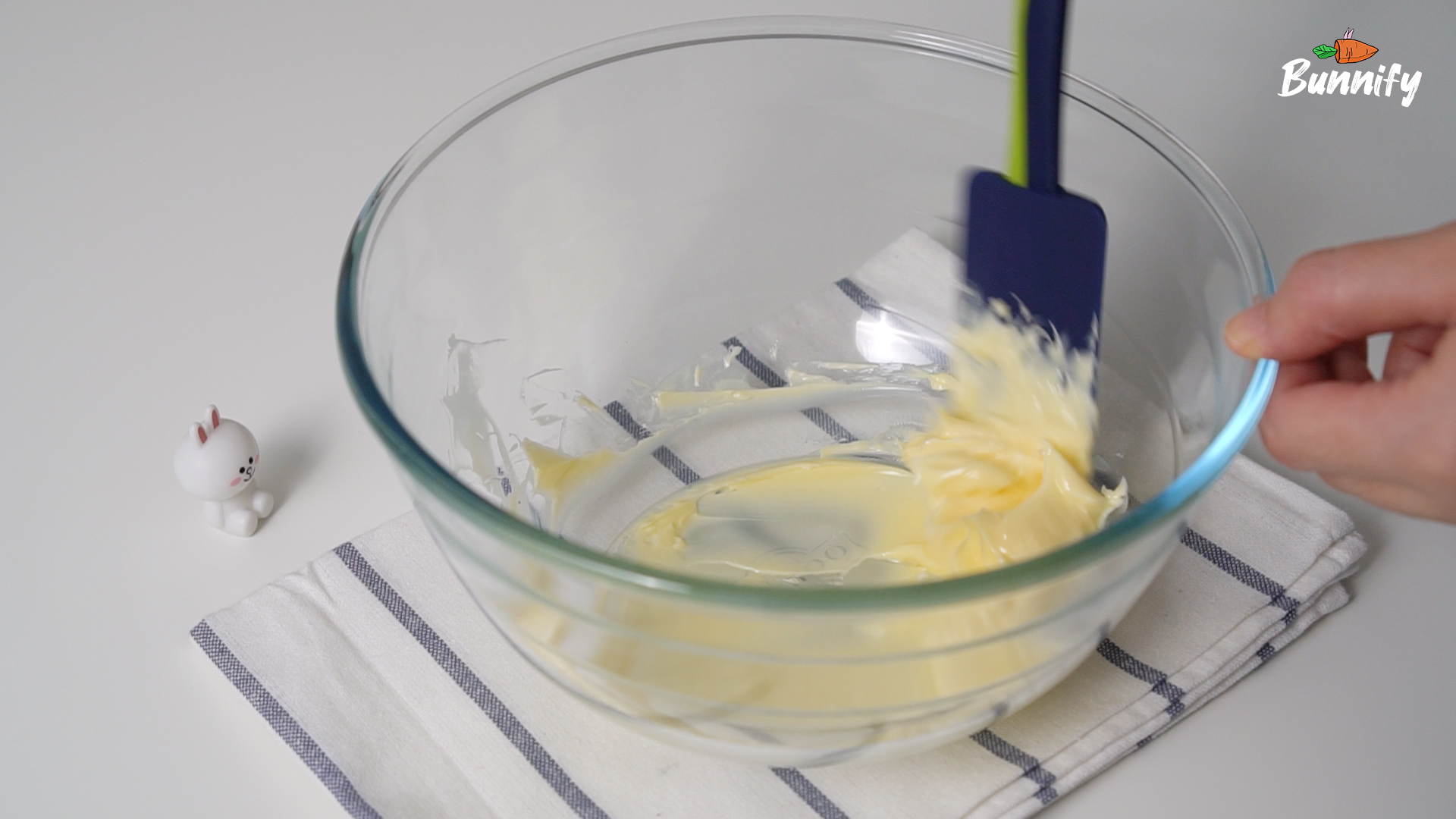 1. 버터를 부드럽게 풀어 주세요. 핸드믹서가 아닌 스패츌러를 사용하시는 게 좋아요.