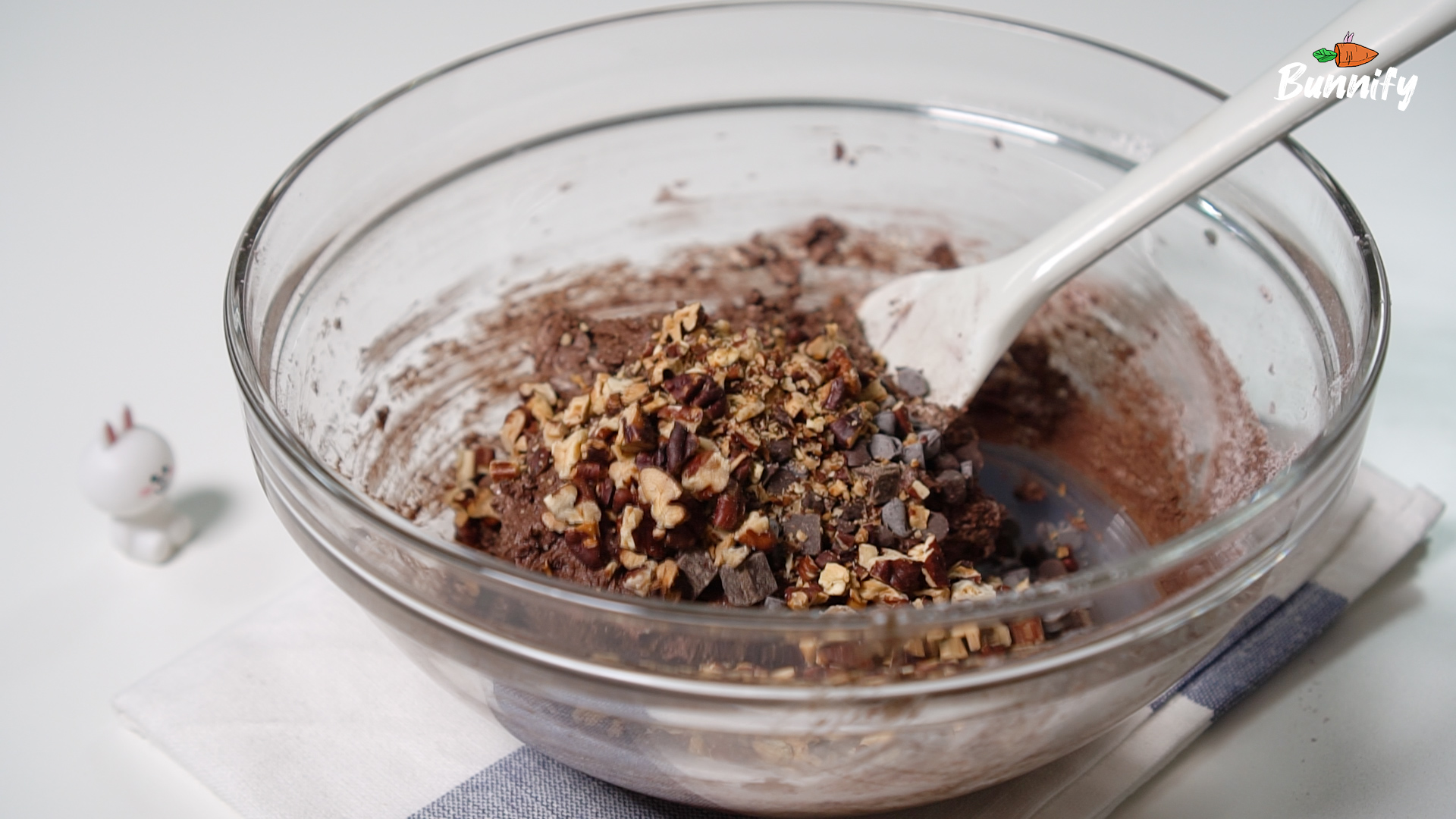 6. 다크 초코칩/초코 청크와 피칸을 넣고 골고루 섞어 주세요. 기호에 따라 다크 초코칩과 청크의 비율을 조절해주세요. 다크 청크가 없으시면 다크 초코칩만 넣으셔도 괜찮아요.