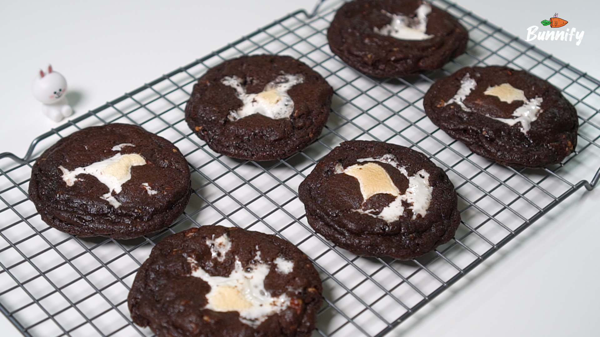 11. 170℃에서 8-10분 간 구워 주세요. 오븐에서 쿠키를 꺼내는 타이밍이 중요해요. 너무 오래 있으면 마시멜로우가 모두 녹아 버려요. 영상을 보시면 적절한 타이밍에 대한 감이 오실 거예요.