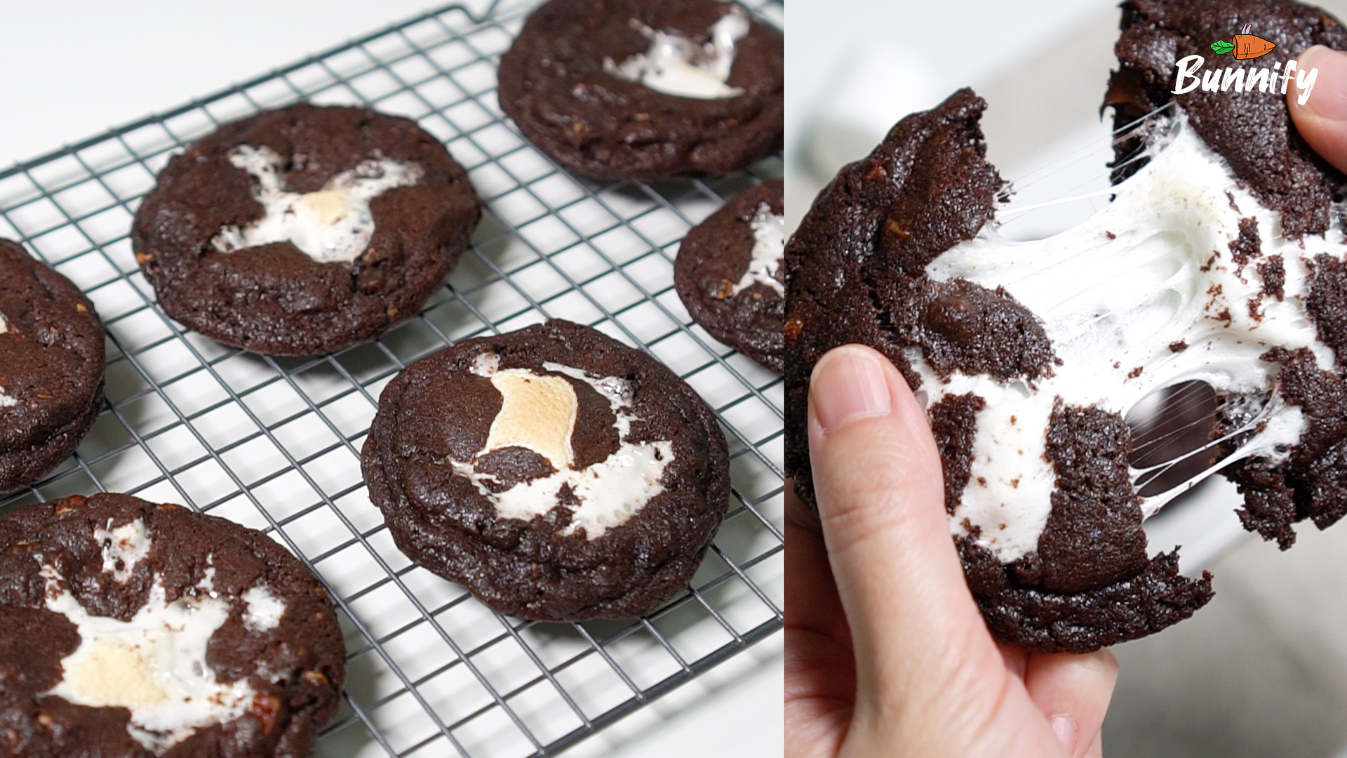 13. 따뜻할 때 쿠키를 갈라 보세요. 마시멜로우가 쭈~욱 늘어나요!