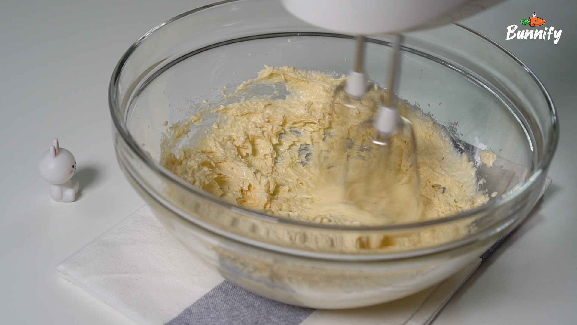 3. 부드럽게 푼 버터에 설탕을 넣고 아이보리 색이 될 때까지 잘 섞어 주세요