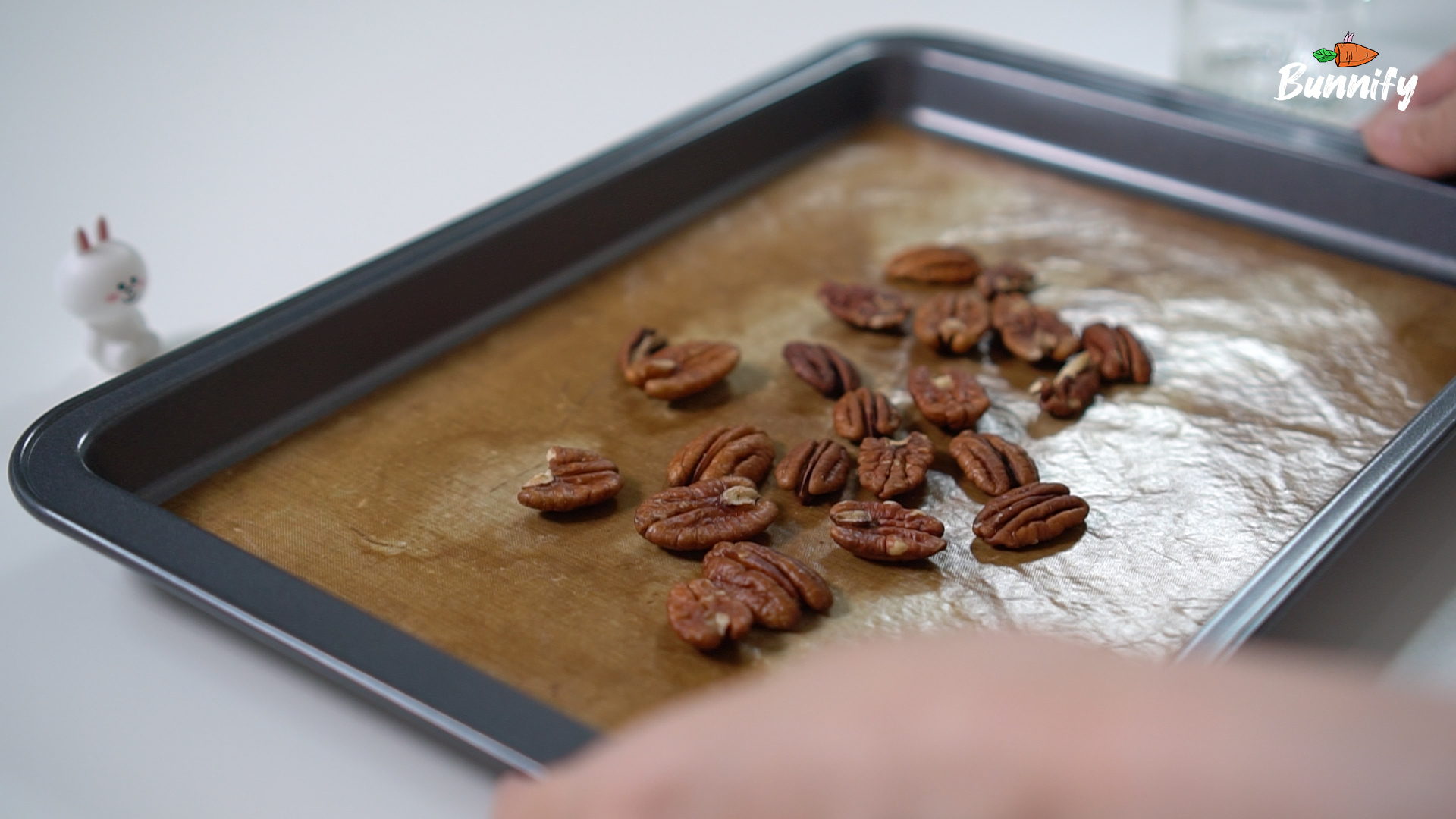 1. 170℃로 예열한 오븐에 피칸을 넣고 5~10분 간 구워 주세요. 더 고소한 풍미를 느끼실 수 있어요!