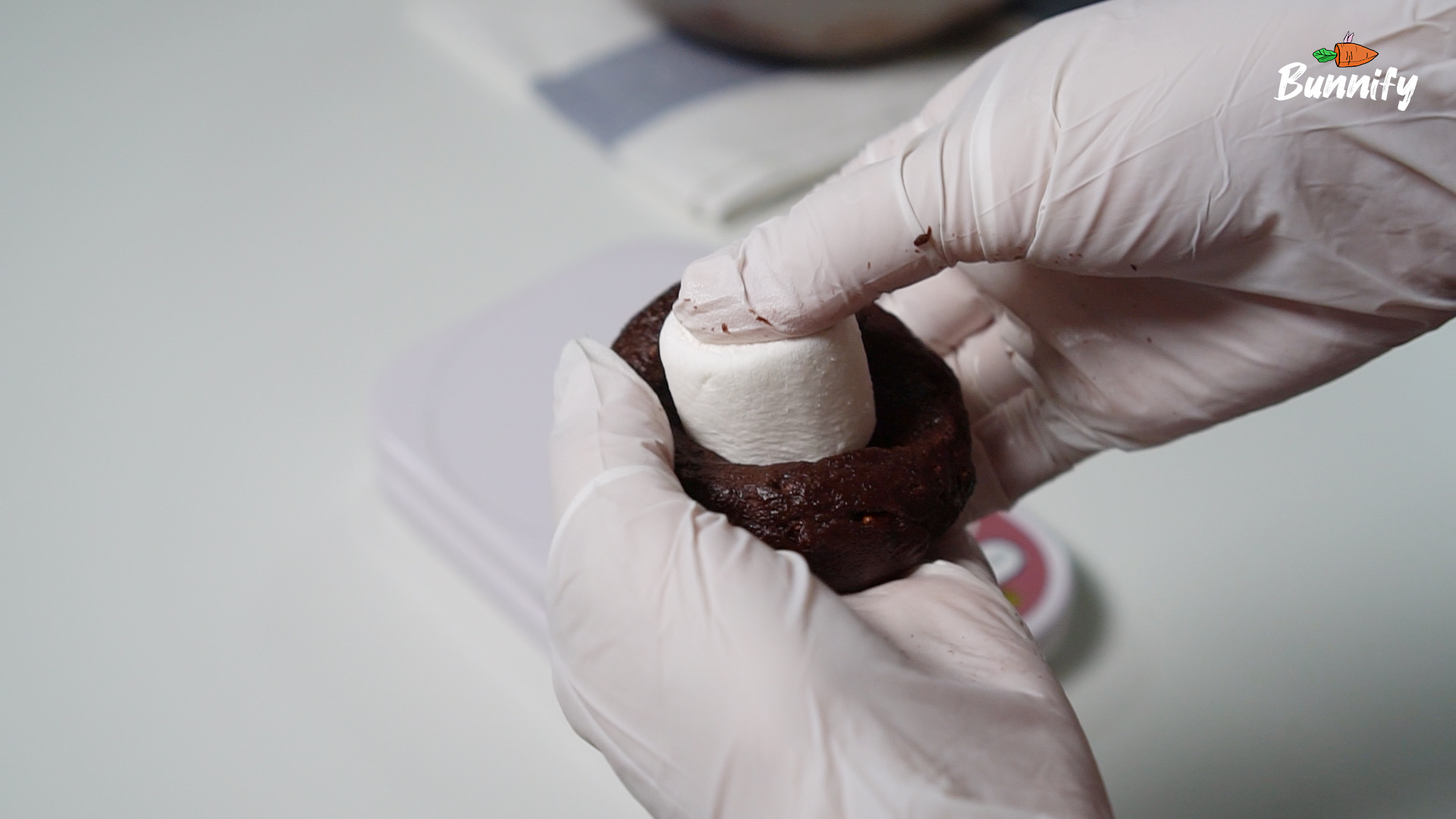 8. 반죽을 60-65g으로 분할한 후, 마시멜로우를 넣고 감싸 주세요