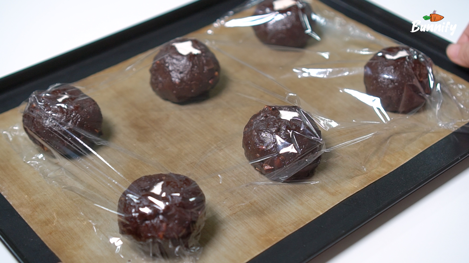 10. 랩을 씌워 20~30분 정도 냉장고에 넣어 두세요. 쿠키 반죽의 온도가 높으면 구울 때 많이 퍼질 수 있어요. 더운 여름철에는 이 과정은 반드시 필요해요. 이 때 오븐을 180℃로 예열해주세요