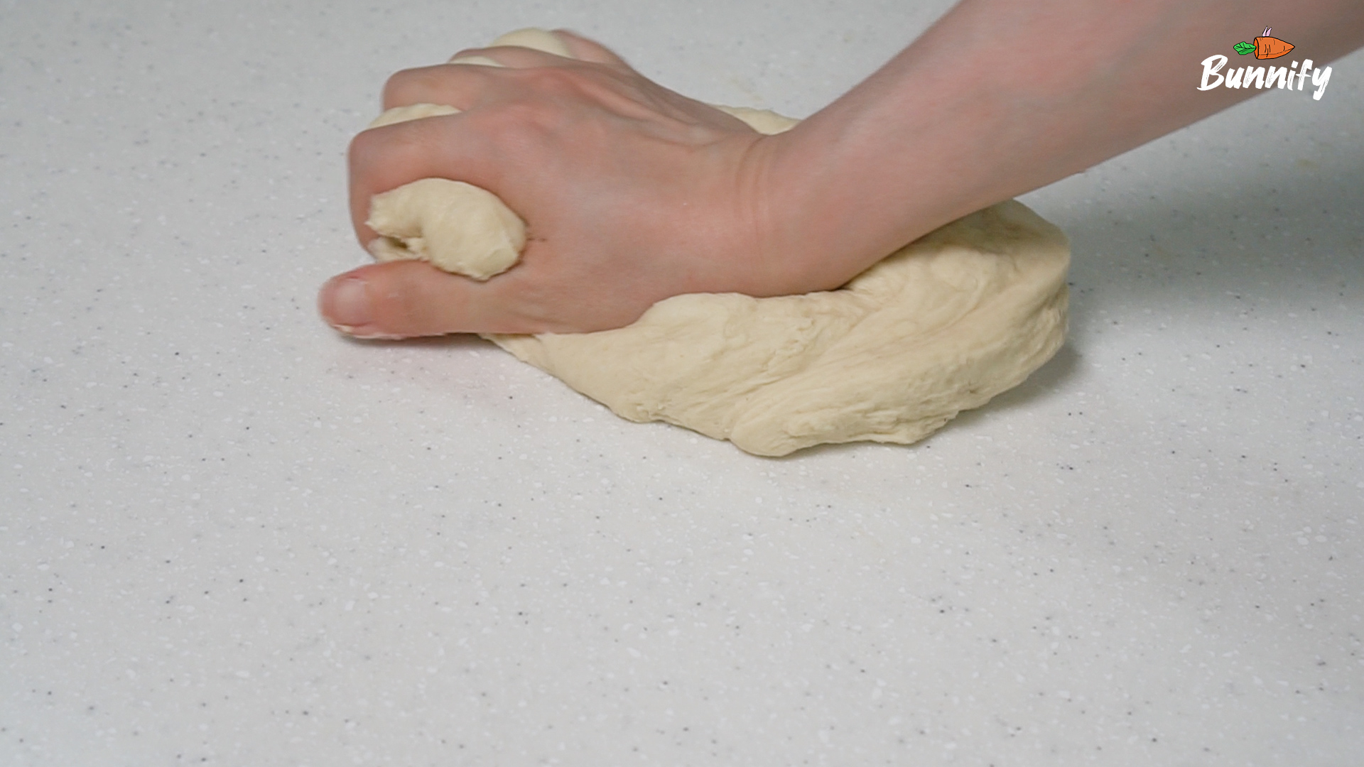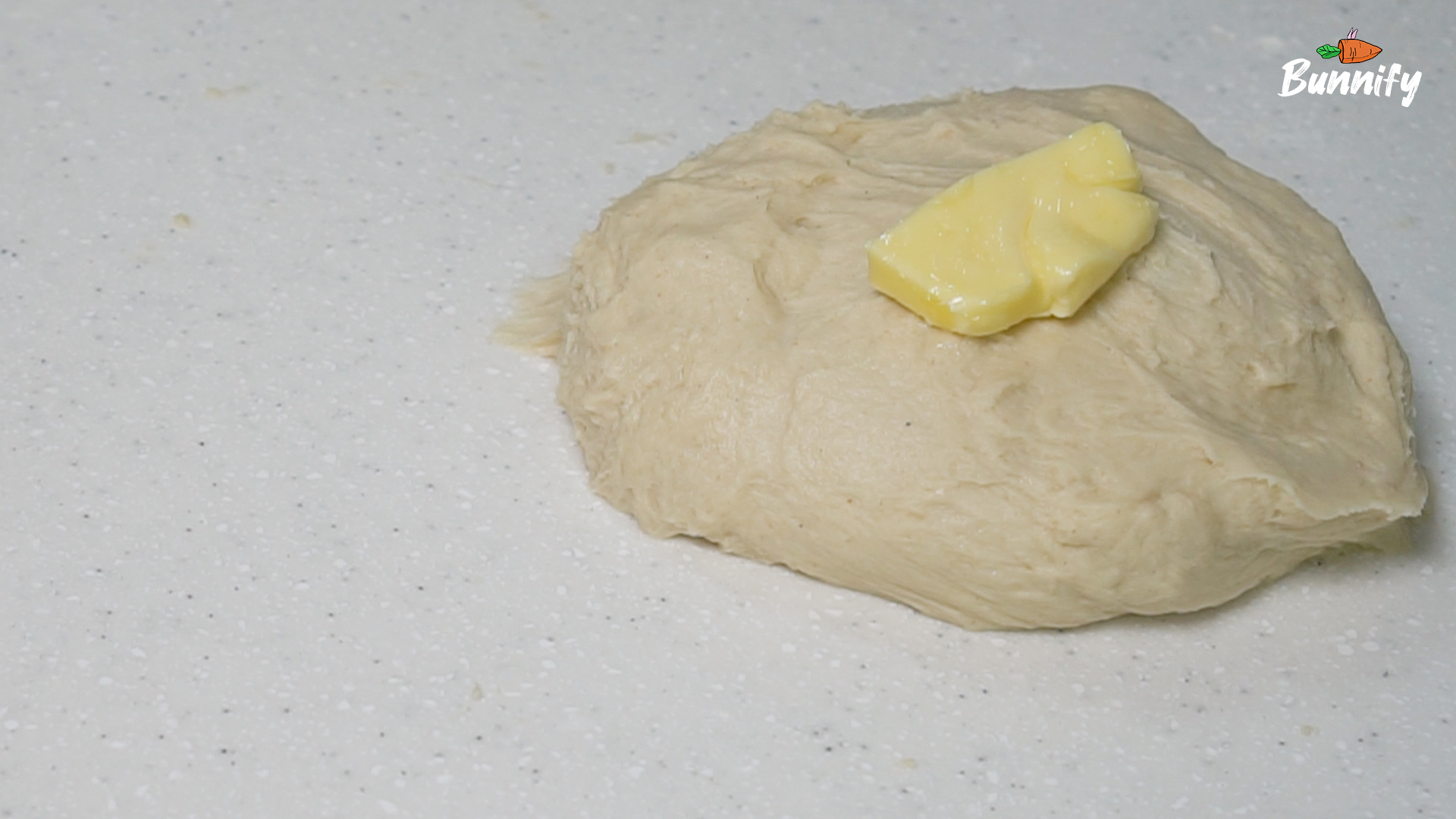 버터가 글루텐을 생성하는 것을 방해하기 때문에, 10분 정도 치대어 글루텐이 어느 정도 생겼을 때 버터를 넣어 주세요.