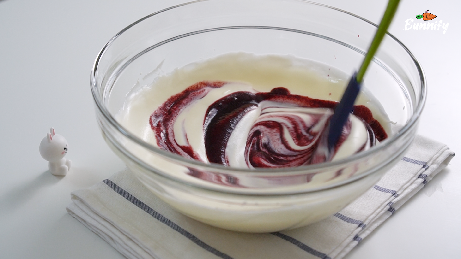 5. 나머지 반죽에 블루베리 퓨레를 넣고 섞어 주세요
