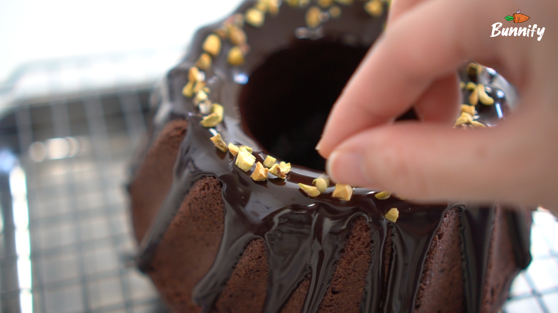 This decadent chocolate cake is dressed up with a ganache glaze for chocolate lovers! A chocolate glaze and chopped pistachios give a crunchy texture to these rich and moist chocolate cake!
