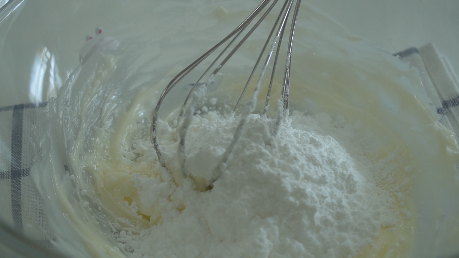 체 친 박력분을 1에 넣고 가르듯이 섞어 주세요