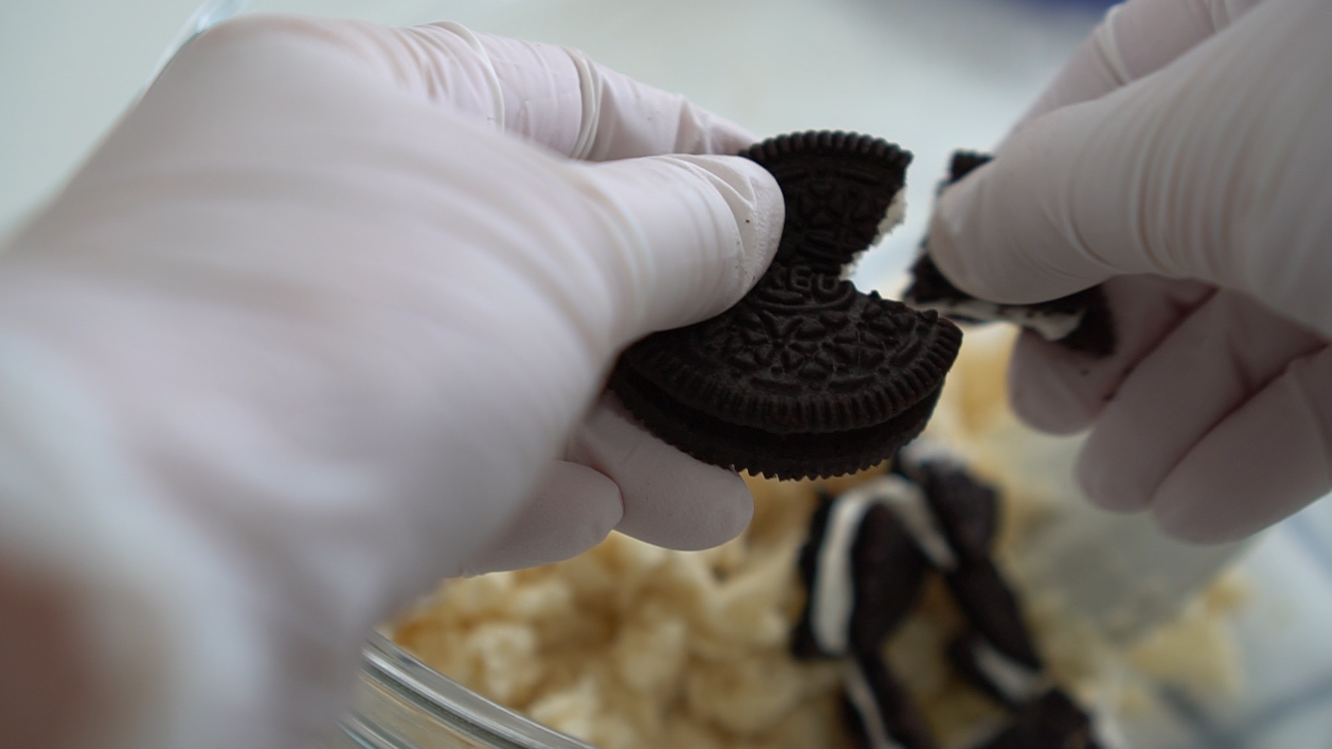 3. Mix in the oreo chunks