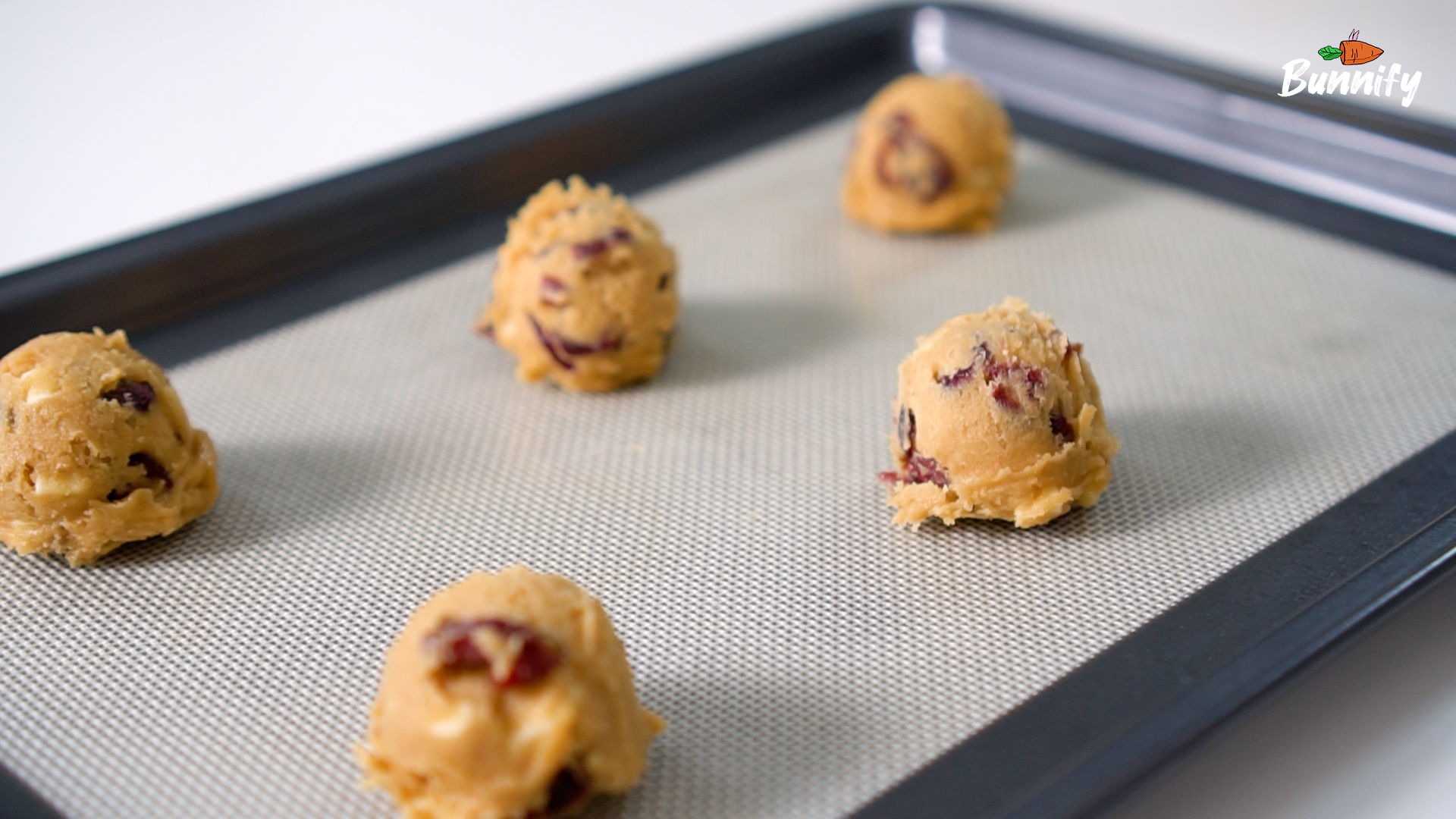 5. 테프론 시트를 깐 팬 위에 서로 간격을 두고 반죽을 놓아 주세요