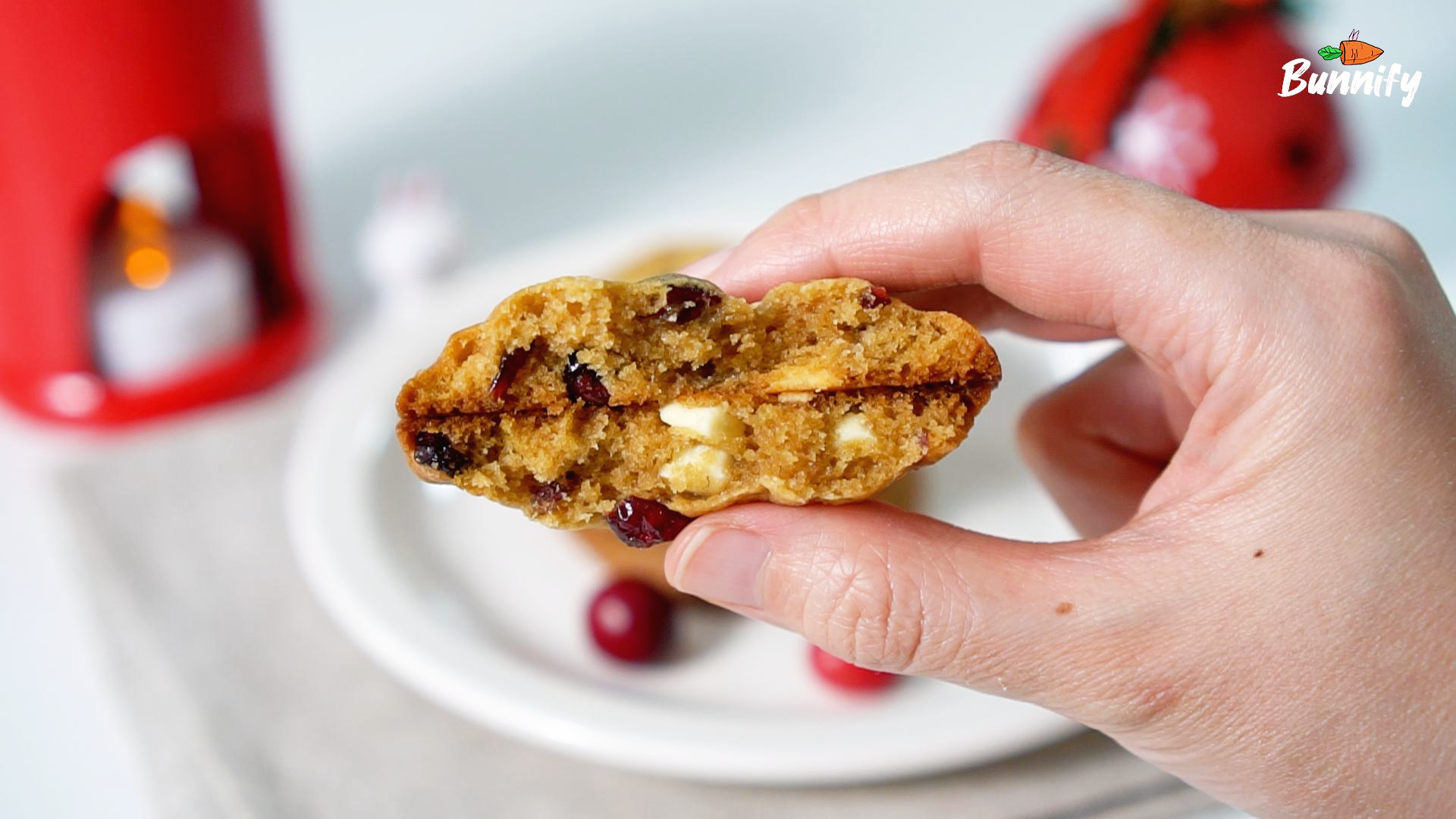 빨간 크랜베리와 하얀 화이트 초코칩의 색상 대비가