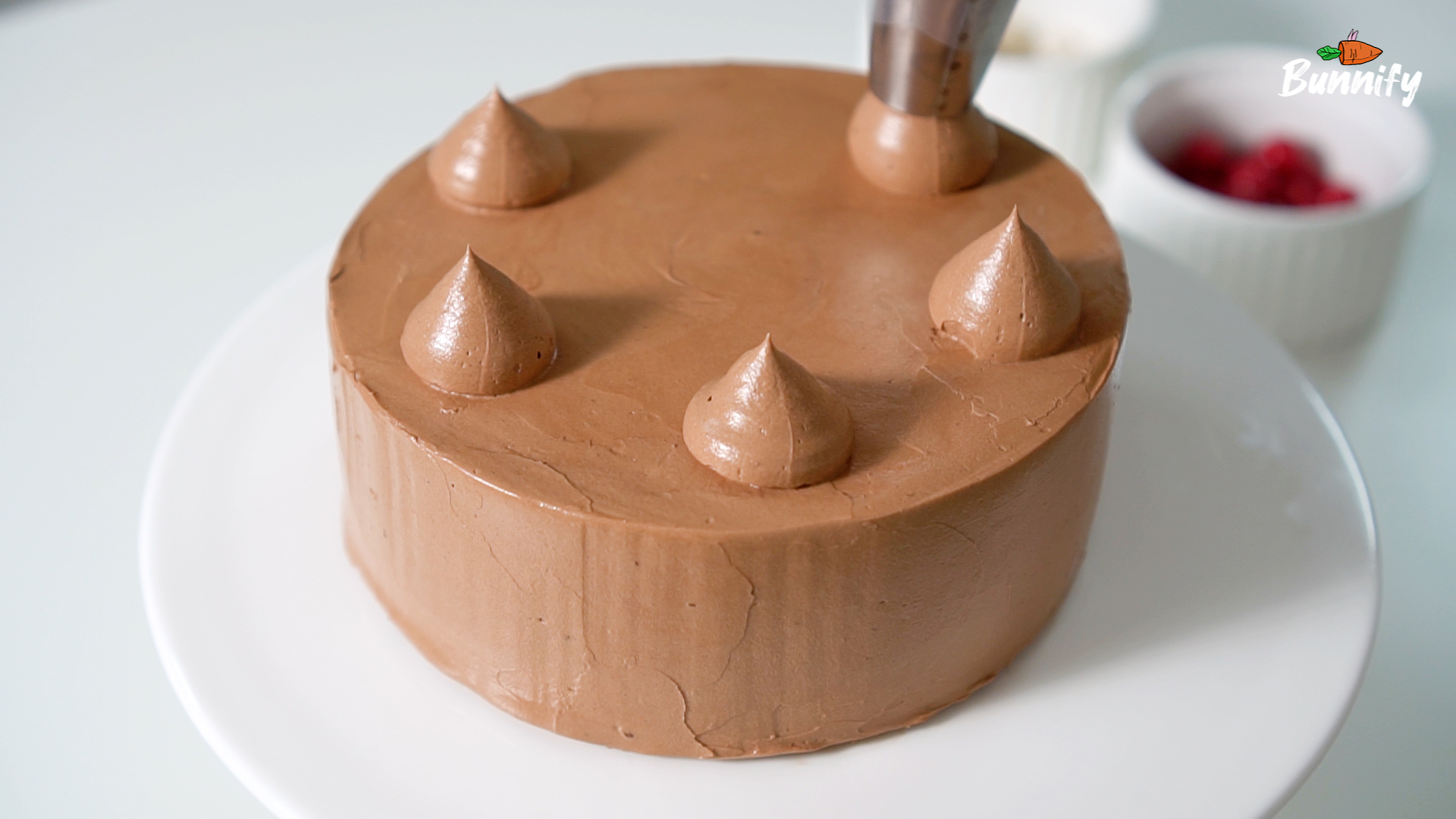 8. 케이크 시트에 시럽을 바른 후, 초코 버터크림을 발라 주세요